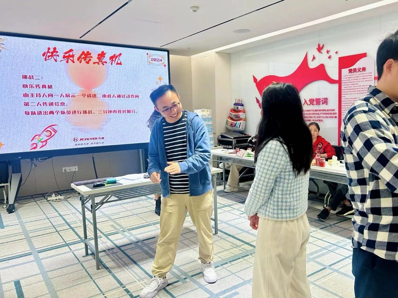 到了緊張刺激、歡樂不斷的共創(chuàng)環(huán)節(jié),壽星們分成了“新文化”和“新訂單”兩個(gè)隊(duì)伍,挑戰(zhàn)了“新年啟新聲”、“愛拼才會(huì)贏”、“快樂傳真機(jī)”三個(gè)小游戲。不僅考驗(yàn)集體反應(yīng)能力,還考驗(yàn)大家的團(tuán)隊(duì)配合,讓大家在游戲中感悟凝心聚力的重要性。