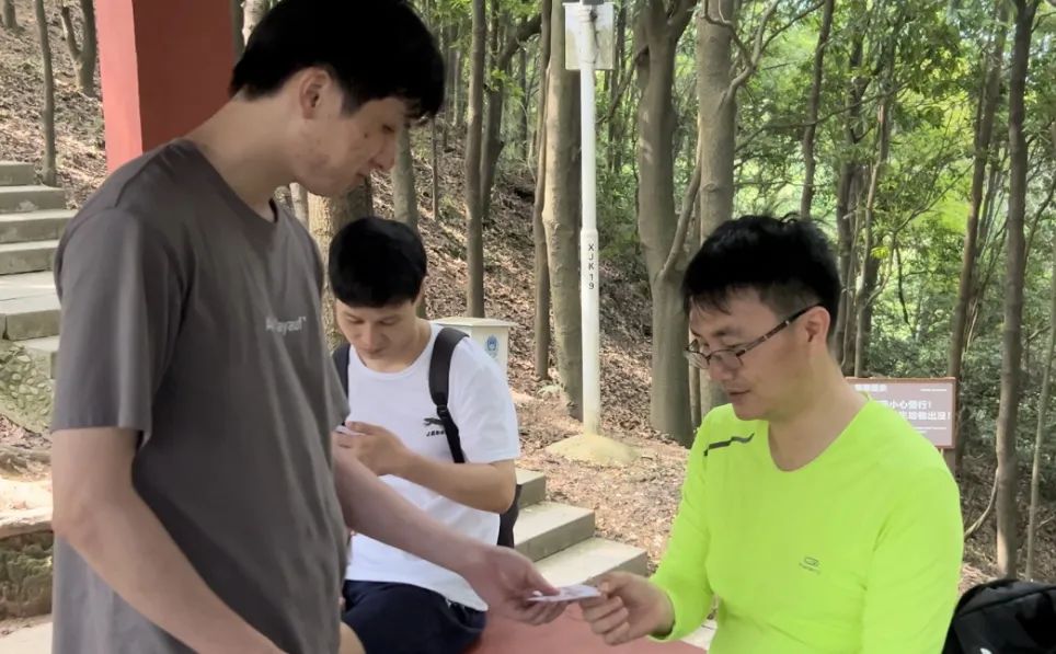 當(dāng)日上午,全員集合完畢,大家伴著明媚的陽光,互相扶持,互相幫助,邊走邊感受綠色生態(tài)氣息,贊嘆革命先輩奮斗的不易,途徑風(fēng)門坳、大陽臺(tái)山頂、秋菊亭,歷時(shí)7小時(shí),最終到達(dá)“勝利大營救”主題紀(jì)念碑前。