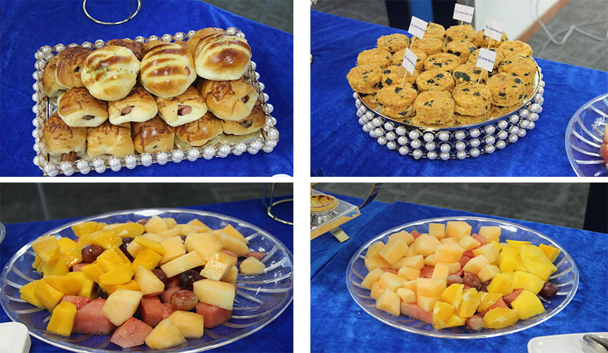 現(xiàn)場不僅有精彩的干貨培訓(xùn)課程,更有美味佳肴讓人垂涎欲滴,深圳九洲為大家提供美味茶歇,課間休息時間,學(xué)員們前往茶歇區(qū),分享美食,喜笑顏開。