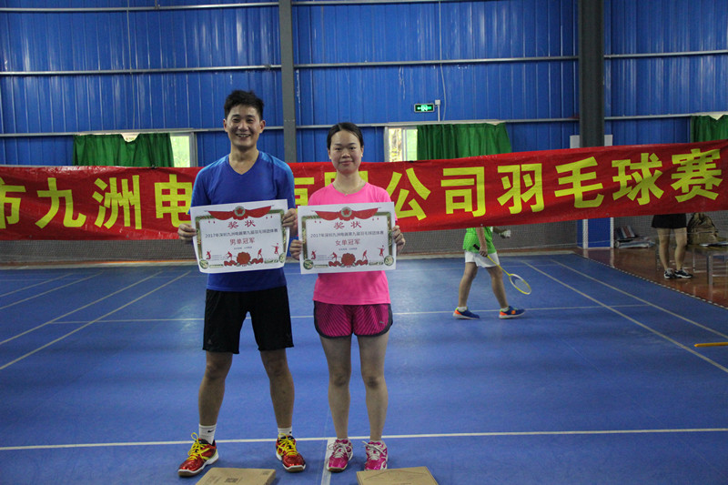 為豐富公司業(yè)余活動,活躍企業(yè)文化建設,深圳市九洲電器有限公司一年一度的第九屆羽毛球友誼賽于2017年7月29日科技園文體中心羽毛球館拉開了序幕,公司各部門職員積極參加,同時我們盛情邀請了九洲傳媒、九洲控股2支隊伍參加比賽,總共報名參加比賽的有11支隊伍,本次的比賽分設項目有:男單、女單、男雙、混雙四個項目,另增加了男女MVP,表彰單打出色的選手。